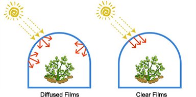Sunlight entering the greenhouse through the film is converted into direct or astigmatic light. Film with astigmatism, although it appears blurry, is not opaque and allows for photosynthetically active radiation to plants.